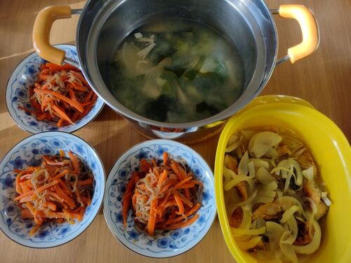 1ヶ月が経ちました! 今朝、時間があったので、夕食もすでに作ってあります。 鯖の南蛮漬け、人参と糸こんにゃくのきんぴら、味噌汁 今日の夕食、明日の昼食分です。きんぴらと味噌汁は多めです。 食費 支出7,242円。 残金2,758円。ですが… お米は 10キロ3,00…