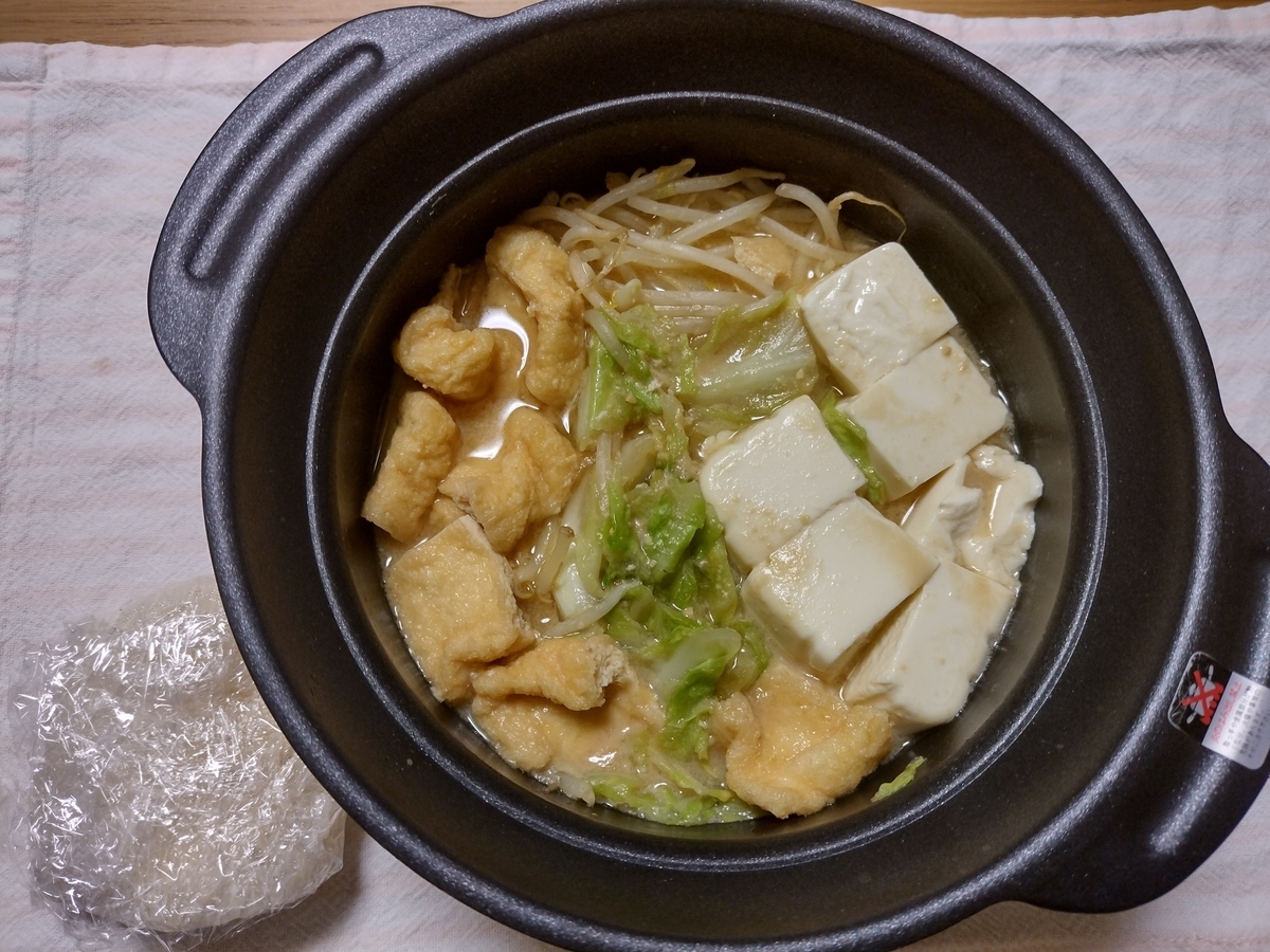 昨日、鶏むね肉を煮て余った味噌ダレで、鍋を。 生姜が効いておいしかったです。